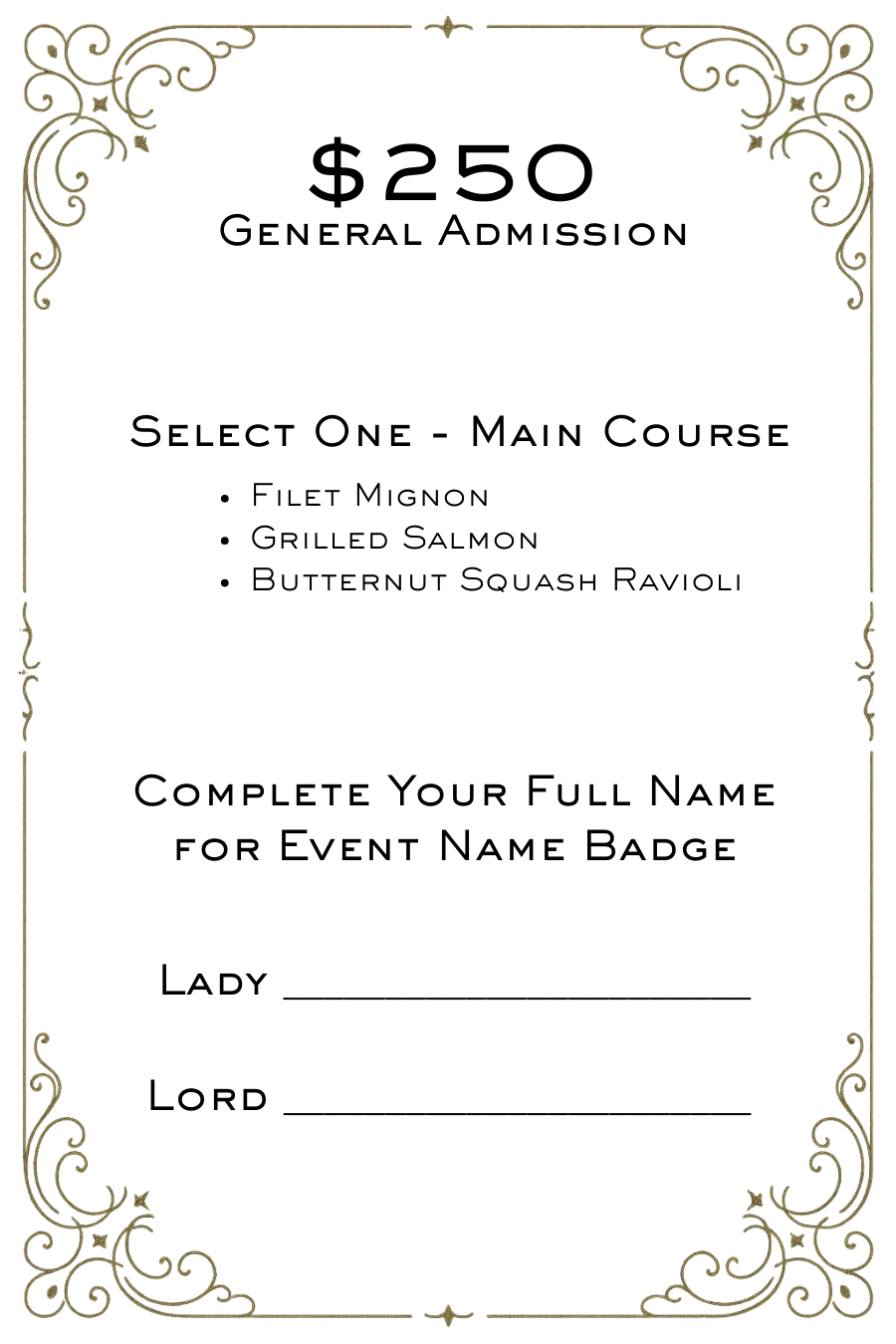 $250 General admission Ticket